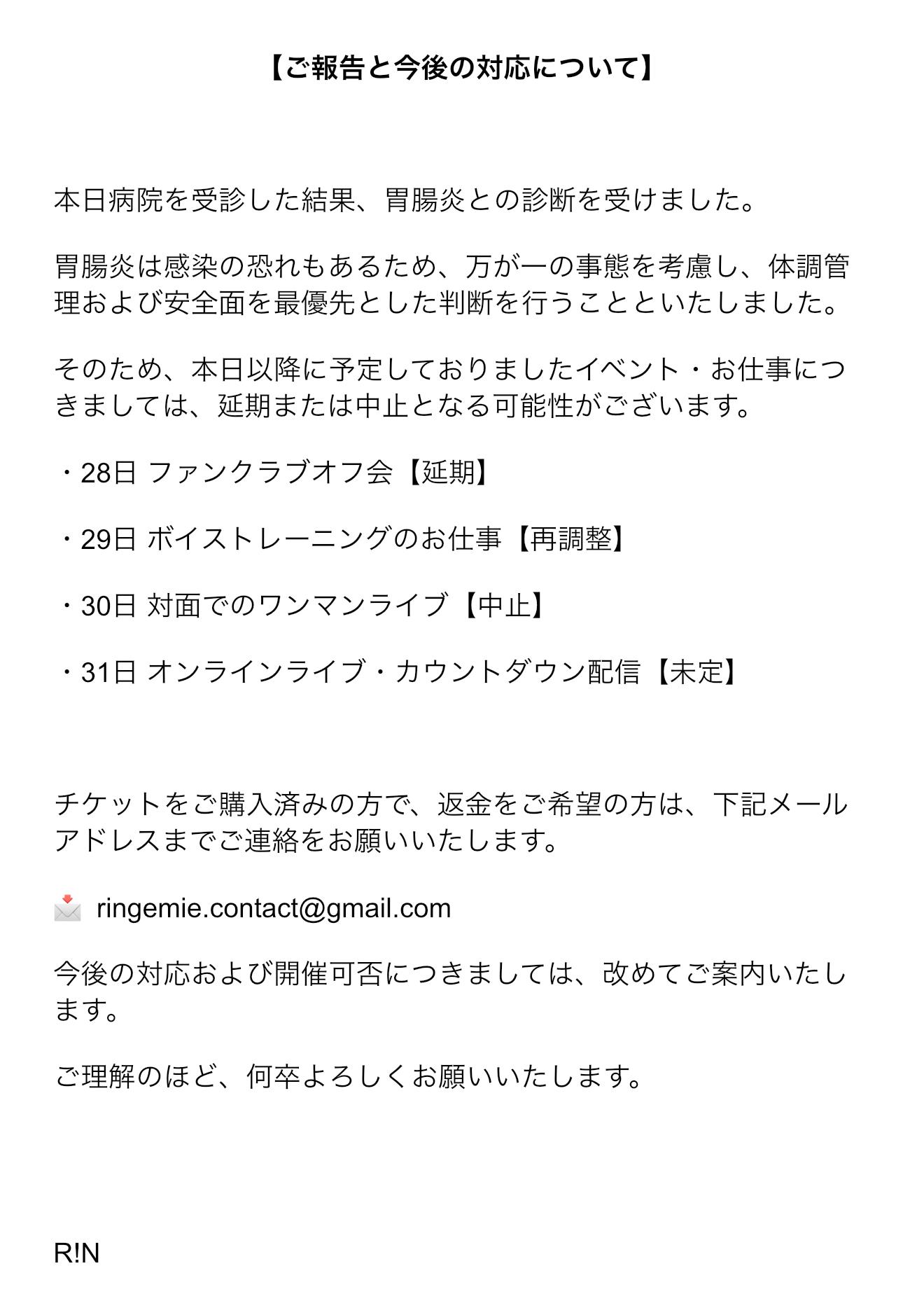 ファンクラブオフ会 延期のお知らせ